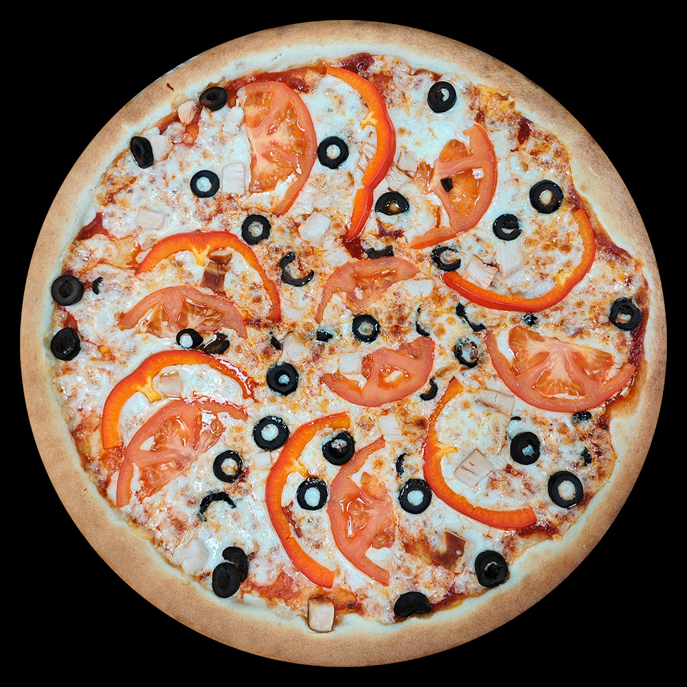 Новая пицца на основе свежих овощей и курицы, с приятным ароматом болгарского перца в сочетании с маслинами вас приятно удивит!