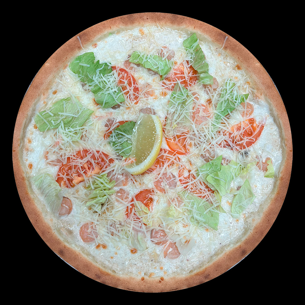 Легендарная классика,в свежем исполнении,сочная пицца из креветки, салата айсберг,пармезана и свежих помидоров