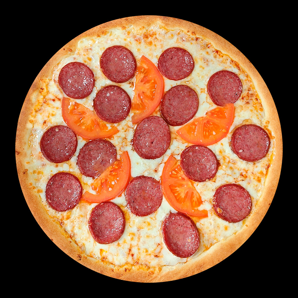 Классическая пицца из колбаски "Салями" с помидором и моцарелой на основе томатного соуса