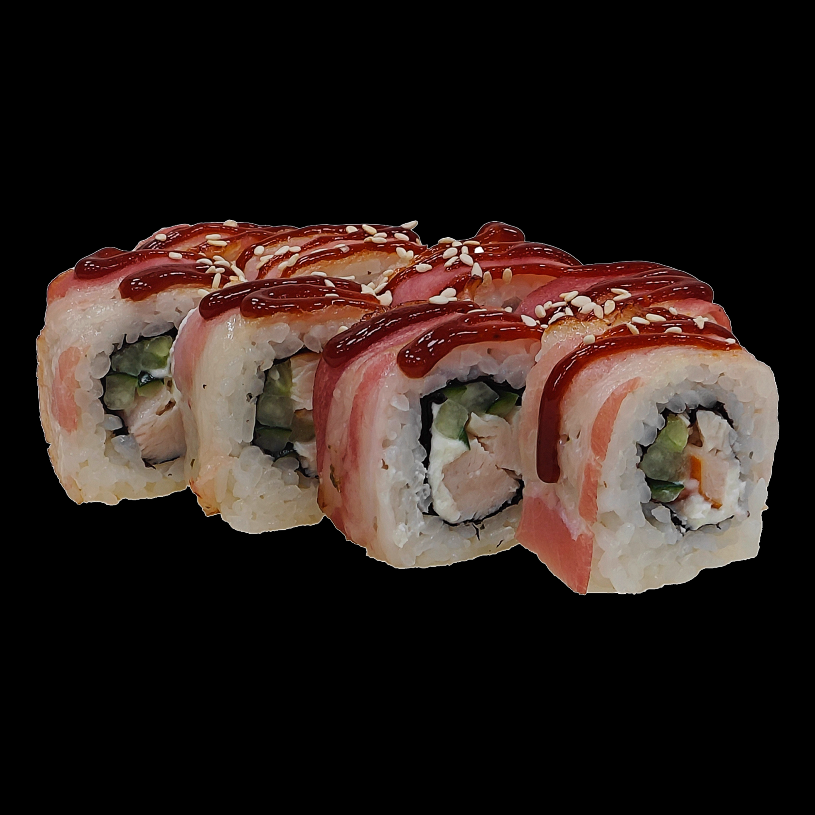 Рис, нори, курица в/к, сыр сливочный, огурец, сырокопч.бекон