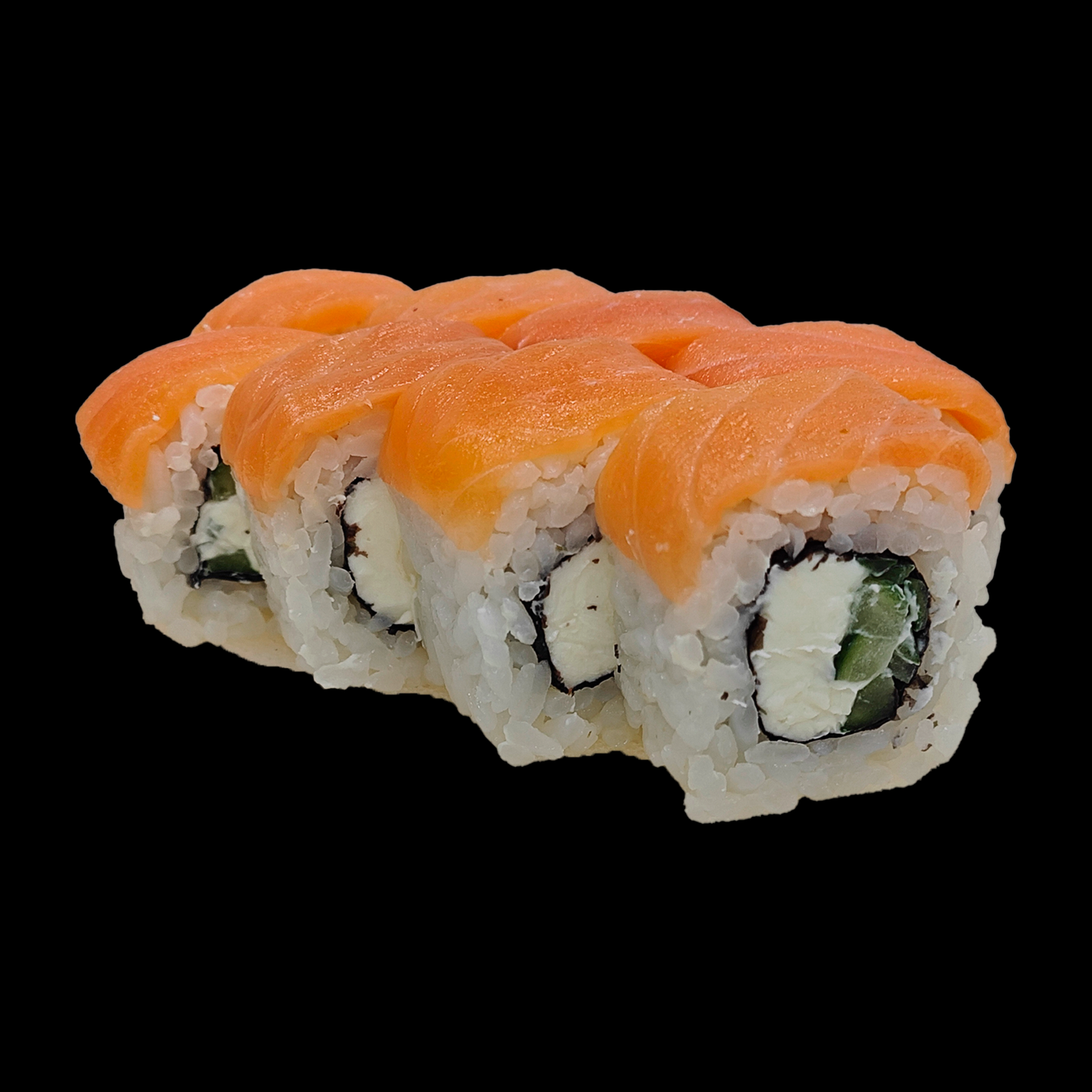 Рис, нори, сыр сливочн.,огурец, лосось, икра масаго.