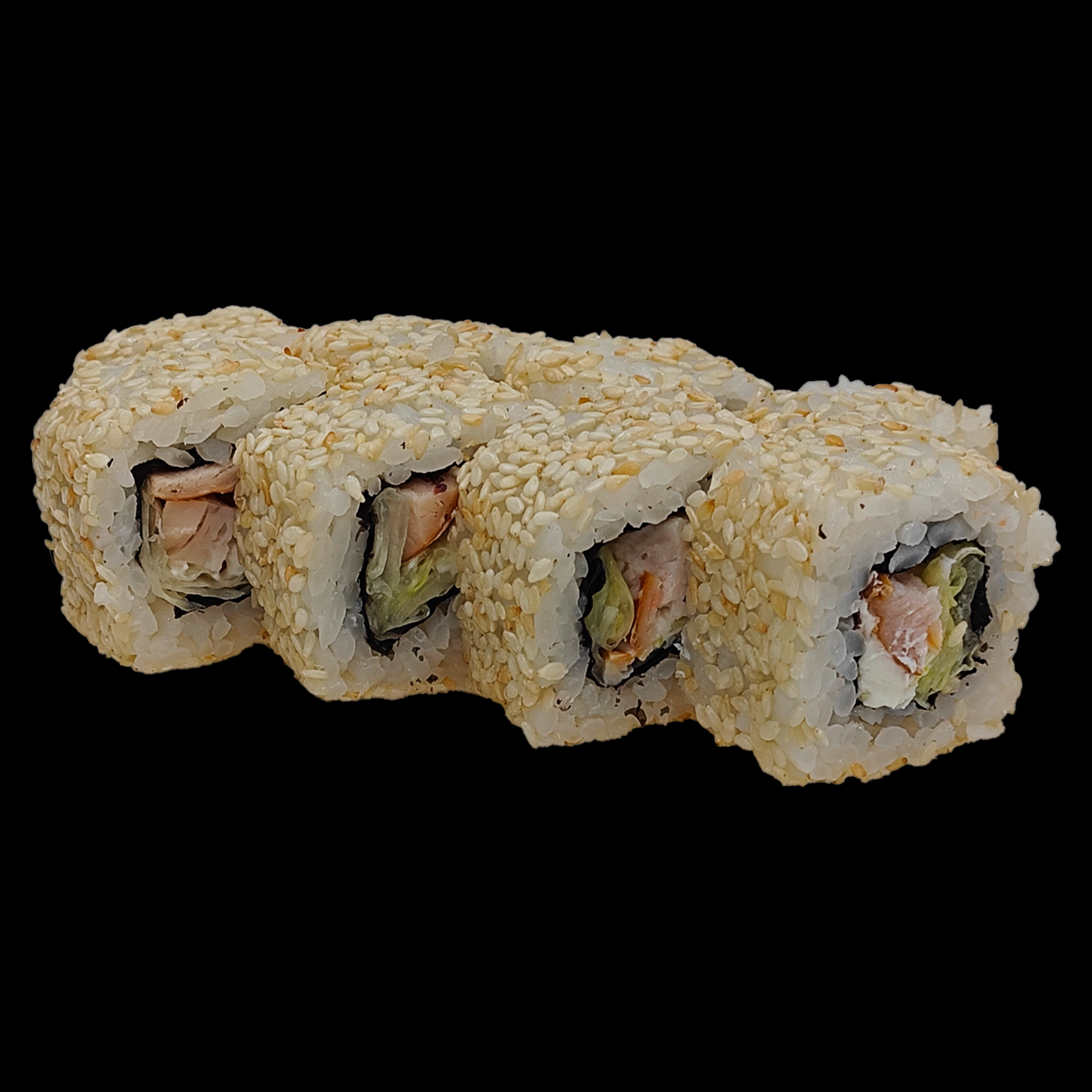 Рис, нори, курица в/к, сыр сливочн, кунжут,салат айсберг